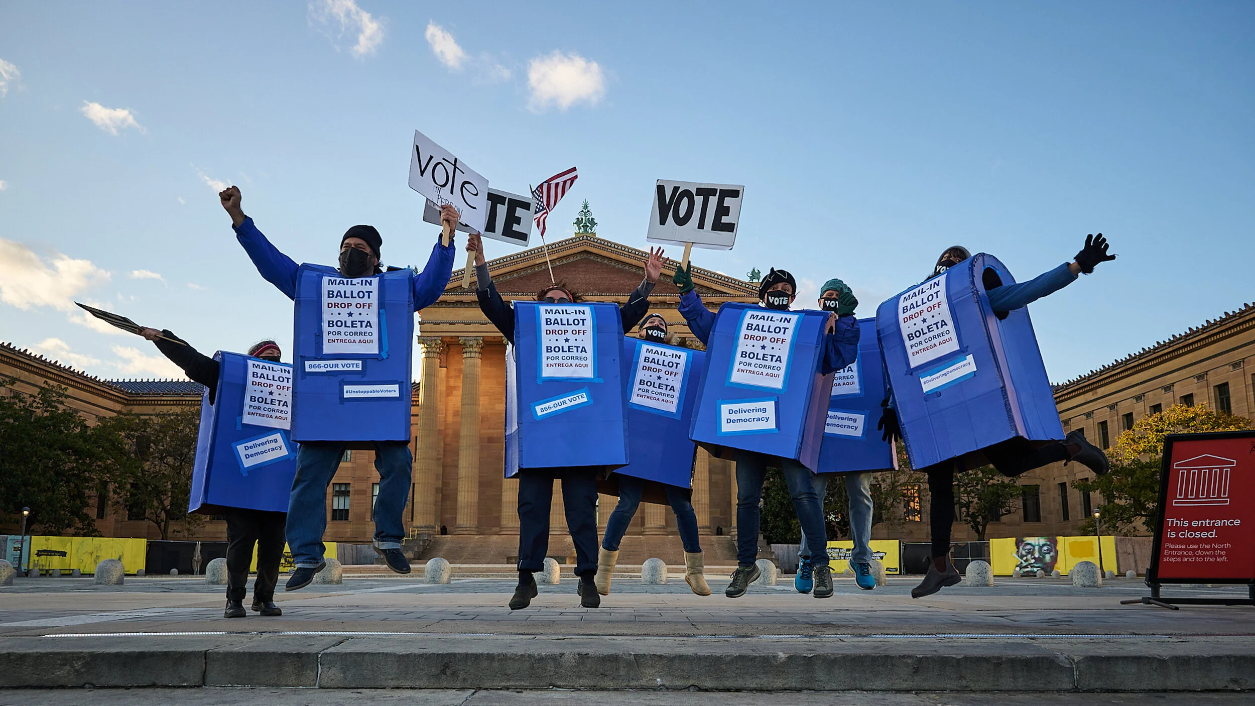 Imagine troupes of dancing mailboxes, amusing people in public spaces in different towns all across Pennsylvania, and then giving out flyers with useful and accurate information about how and where to vote by mail, to vote by drop box, and/or to vote in person. This is #DeliveringDemocracy!